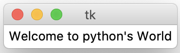 myLabel = tkinter.Label(root, text="Welcome to python's World") #在视窗对象中实例化一个Label对象
