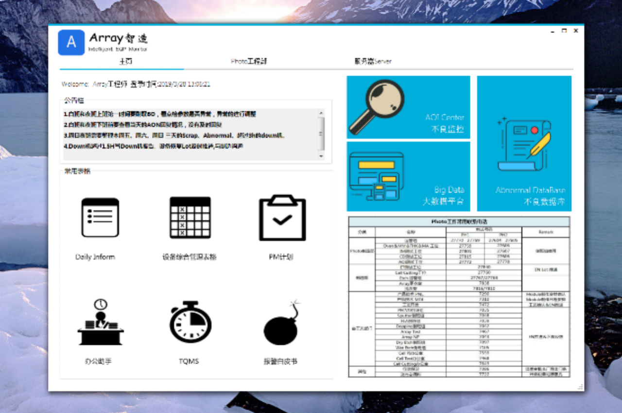 - 主要模块:设备监控、工艺监控、不良调查