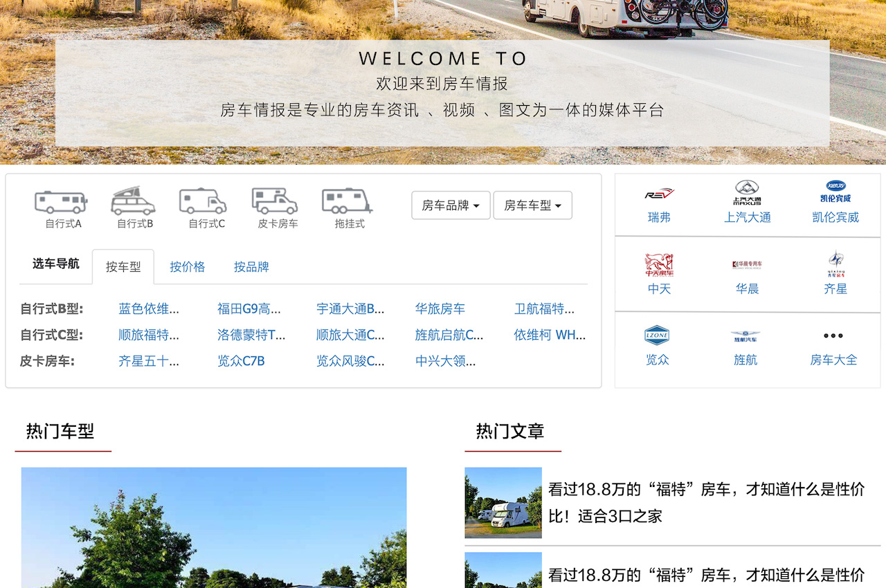 项目描述:一个为房车情报官方设计的房车展示、新闻展示、车型数据库网站。